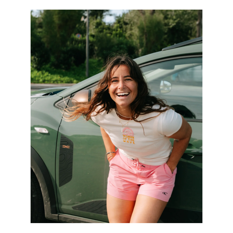 La camiseta Women of the Wave, de corte entallado y ligeramente corta, refleja tu pasión por las olas y ofrece una comodidad inigualable en los calurosos días de verano. Con un diseño clásico de cuello redondo y un estampado único en el pecho y la espalda, esta hermosa camiseta está confeccionada en tejido 100 % algodón de peso medio, lavado con enzimas.